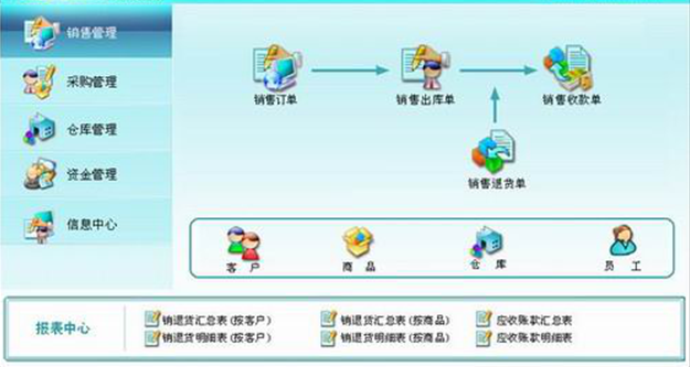管理包括銷售訂單、銷售出庫、銷售退貨、銷售收款等業(yè)務(wù),具有以下功能特點: