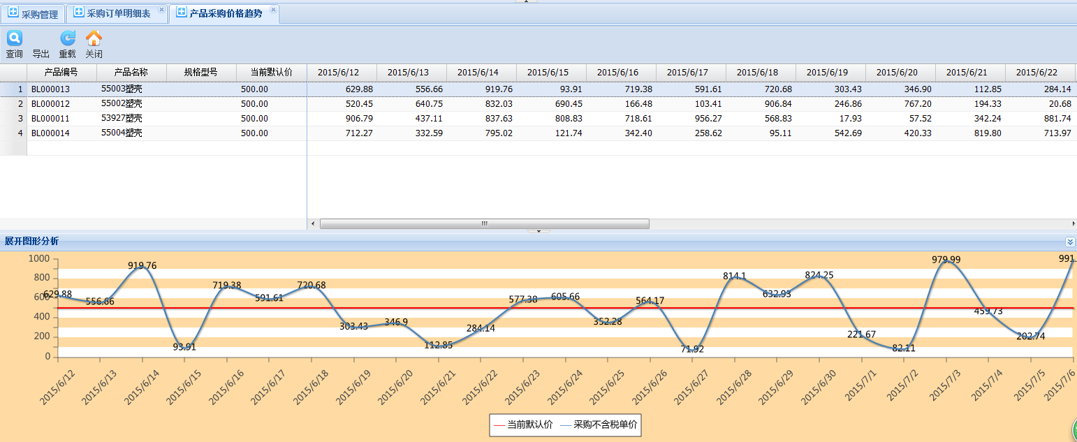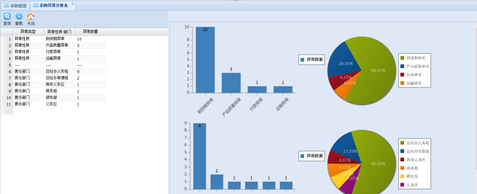 一目了然,各部門、物品扥等條件可查看采購異常