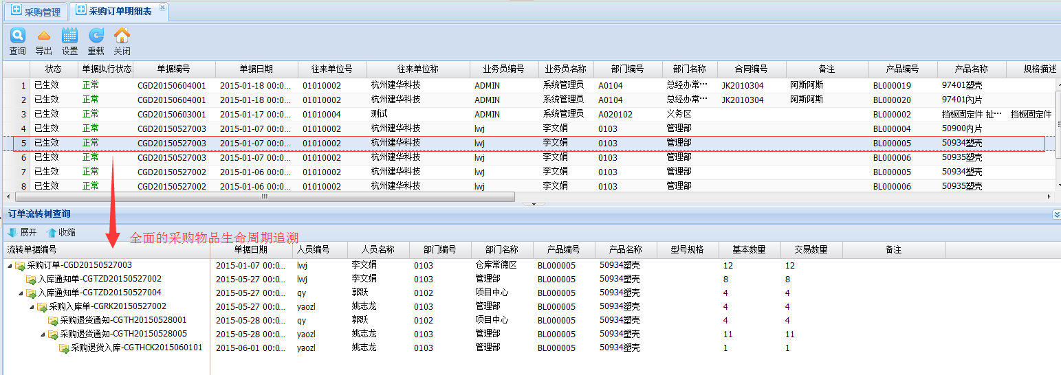 采購訂單明細、統(tǒng)計、查詢檢索、等簡單清晰。針對明細產(chǎn)生對應的每張采購可生成采購物品生命周期表