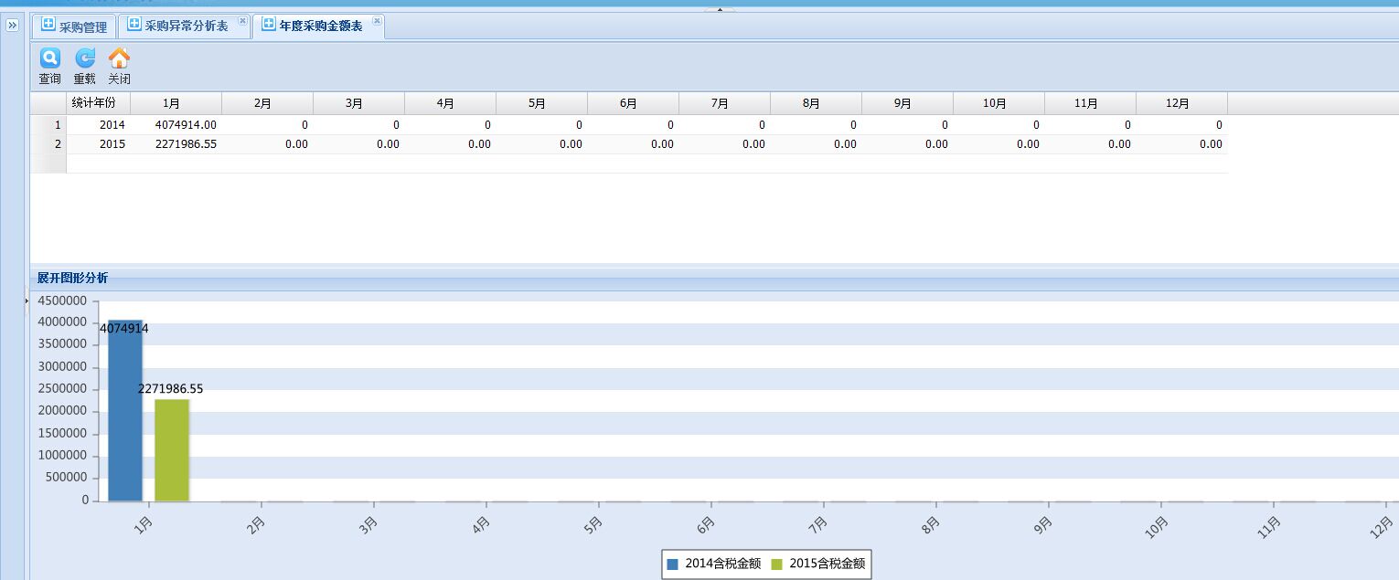 年采購狀況分析表,相信企業(yè)管理者必須產(chǎn)看的科目,重點在于這是系統(tǒng)實時提供的準確數(shù)據(jù)。