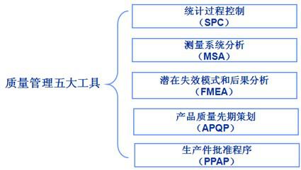 | 質(zhì)量是企業(yè)的生命,是一個(gè)企業(yè)整體素質(zhì)的展示,也是一個(gè)企業(yè)綜合實(shí)力的體現(xiàn)。伴隨人類社會(huì)的進(jìn)步和人們生活水平的提高,顧客對(duì)產(chǎn)品質(zhì)量要求越來越高。因 此,企業(yè)要想長(zhǎng)期穩(wěn)定發(fā)展,必須圍繞質(zhì)量這個(gè)核心開展生產(chǎn),加強(qiáng)產(chǎn)品質(zhì)量管理,借以生產(chǎn)出高品質(zhì)的產(chǎn)品,讓企業(yè)領(lǐng)導(dǎo)放心,讓我們的客戶稱心!下面我們主要針對(duì)質(zhì)量管理中核心的五大工具進(jìn)行介紹。 | |