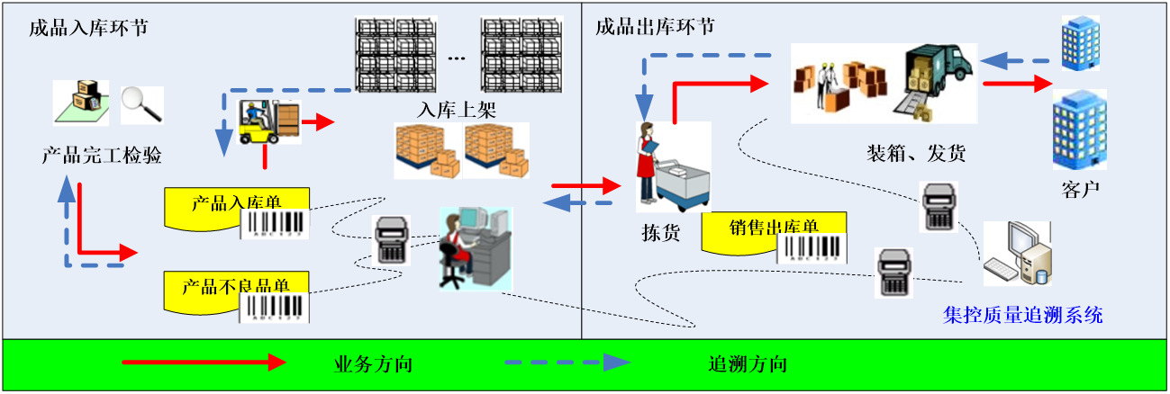 v 條碼技術(shù)/RFID的應(yīng)用,清晰記錄從原材料采購、生產(chǎn)領(lǐng)用、生產(chǎn)全過程控制到產(chǎn)品銷售出庫等一系列物流主要環(huán)節(jié),正反方向在系統(tǒng)任一環(huán)節(jié)(生產(chǎn)環(huán)節(jié)、銷售環(huán)節(jié)、流通環(huán)節(jié)、服務(wù)環(huán)節(jié))對產(chǎn)品進(jìn)行質(zhì)量追溯;