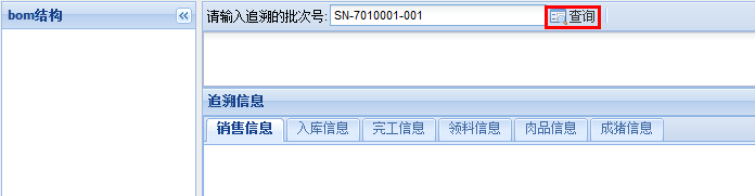 產(chǎn)品追溯信息包括產(chǎn)品銷售信息、產(chǎn)品入庫信息、產(chǎn)品完工信息、生產(chǎn)領(lǐng)料信息以及主要原料信息;