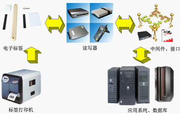 基本的RFID應(yīng)用系統(tǒng)由三部分組成:標(biāo)簽(Tag):由耦合元件及芯片組成,每個(gè)標(biāo)簽具有唯一的電子編碼,附著在物體上標(biāo)識(shí)目標(biāo)對(duì)象;讀寫器(Reader):讀。ㄓ袝r(shí)還可以寫入)標(biāo)簽信息的設(shè)備,可設(shè)計(jì)為手持式或固定式;中間件(MiddleWare):扮演RFID標(biāo)簽和應(yīng)用系統(tǒng)之間的中介角色,是應(yīng)用系統(tǒng)和讀寫器間數(shù)據(jù)流入和數(shù)據(jù)流出的軟件;镜RFID應(yīng)用系統(tǒng)組成,如圖: