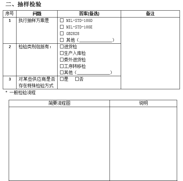 14、使用抽樣檢驗(yàn)方案是什么?(EX: MIL-STD-105D、MIL-STD-105 E、GB2828)
