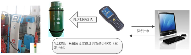 系統(tǒng)建立了充裝單位內(nèi)部的氣瓶檔案履歷信息數(shù)據(jù)庫(kù),由于采用電子標(biāo)簽為每個(gè)氣瓶進(jìn)行 注冊(cè)登記編號(hào),在現(xiàn)場(chǎng)操作時(shí)只要使用手持式閱讀器就可以方便地對(duì)氣瓶進(jìn)行自動(dòng)識(shí)別和登記。手持式閱讀器內(nèi)部預(yù)置有各個(gè)氣瓶的相關(guān)特征信息,在現(xiàn)場(chǎng)操作的各 相關(guān)環(huán)節(jié),手持式閱讀器均會(huì)自動(dòng)對(duì)相關(guān)信息進(jìn)行處理、分析和判斷,對(duì)操作人員進(jìn)行異常信息進(jìn)行提示或報(bào)警,防止了人工操作判斷和記錄極易發(fā)生的差錯(cuò),減輕 了操作人員的工作難度和工作量,實(shí)現(xiàn)了氣瓶安全管理的自動(dòng)化和信息化。