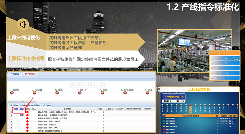 B、通過手持終端、現(xiàn)場看板顯示播放標(biāo)準(zhǔn)作業(yè)視頻、緊急通知,確保員工嚴(yán)格按計(jì)劃要求生產(chǎn),有效的保證了