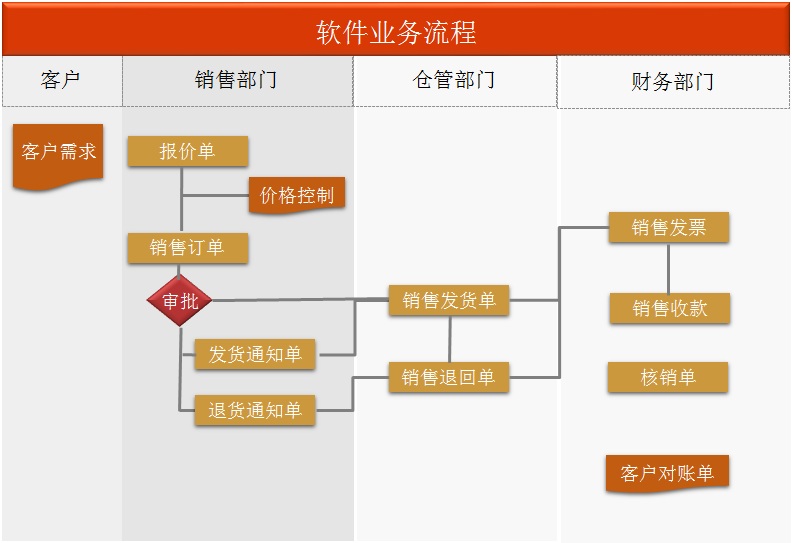 通過(guò)實(shí)現(xiàn)對(duì)銷售報(bào)價(jià)、銷售訂貨(合同)、銷售發(fā)貨、銷售退貨、銷售發(fā)票、銷售收款等全面銷售整體流程的功能,對(duì)銷售全過(guò)程進(jìn)行有效控制和跟蹤。